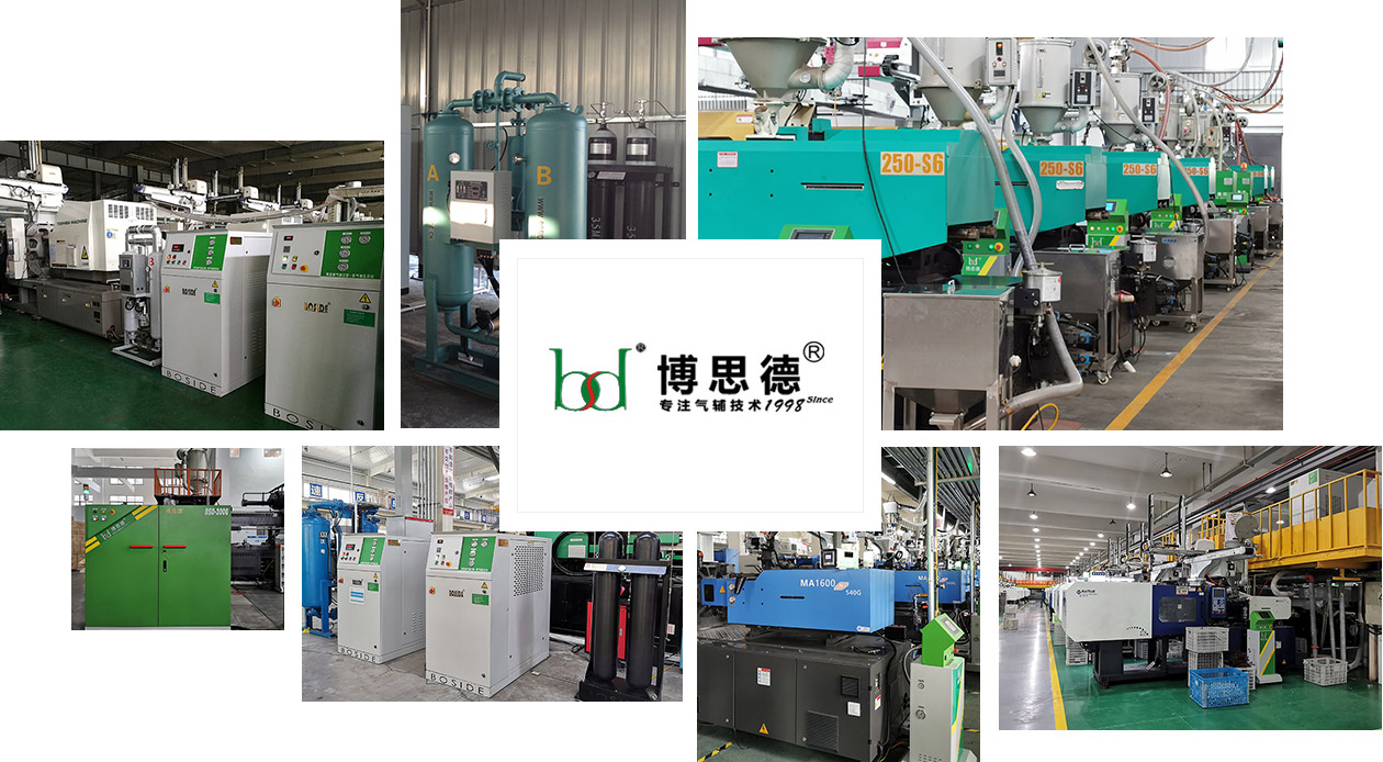 浙江博思德( BOSIDE) 機械有限公司 是專業(yè)從事氮氣輔助注塑成型設備的生產、銷售;氣注塑工藝及氣模具的研發(fā)、應用;高壓氣體設備的生產、銷售及國外品牌代理等業(yè)務。主要經營:氮氣發(fā)生器、高壓壓縮機、氮氣控制系統(tǒng)、氮氣模具制造、注塑成型生產等五大事業(yè)項目。我們有近二十年的氮氣輔助注塑成型(氣體輔助注塑成型)的生產及技術經驗。